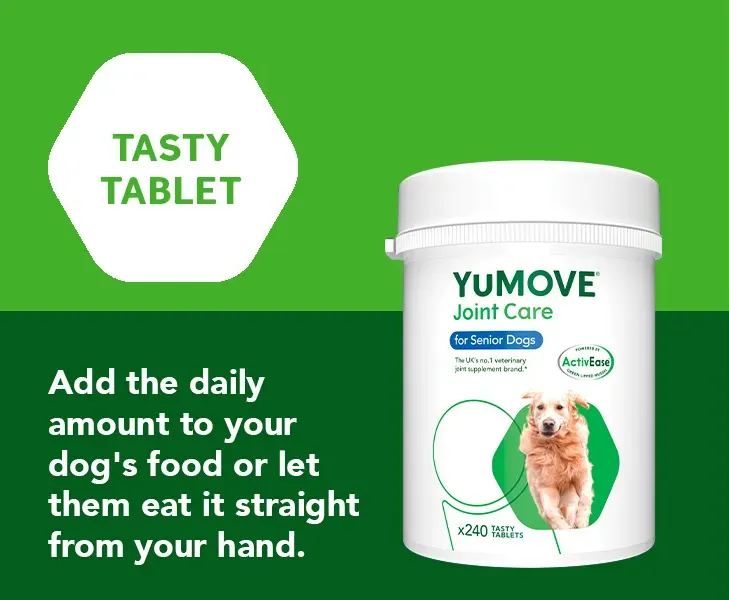 It contains 20% more Green Lipped Mussel (GLM) and higher levels of Glucosamine than the original YuMOVE formula. Trusted by vets and loved by over 2 million dogs globally, it helps keep your dog moving, active, and comfortable.